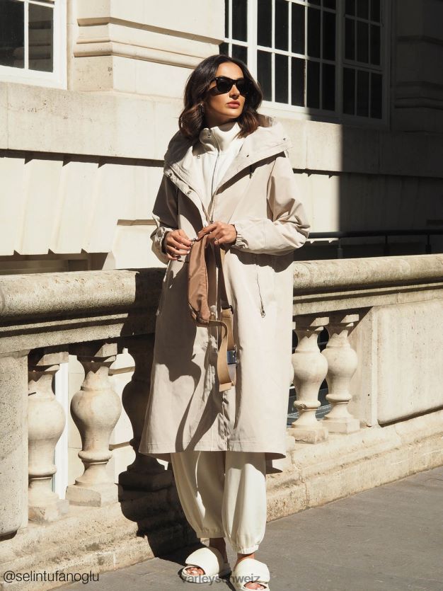 Dieser Mantel ist aus luxuriösem technischem Twill gefertigt und mit einer dauerhaft wasserabweisenden Ausrüstung versehen, um ihn vor leichtem Regen und Flecken zu schützen. Der Grove hat eine Standardpassform und verfügt über Reißverschlusstaschen und Raglanärmel für mehr Bewegungsfreiheit. Es kann in der Taille mit einem Bungee geschnürt werden, um Ihre Silhouette nach Wunsch zu verändern.